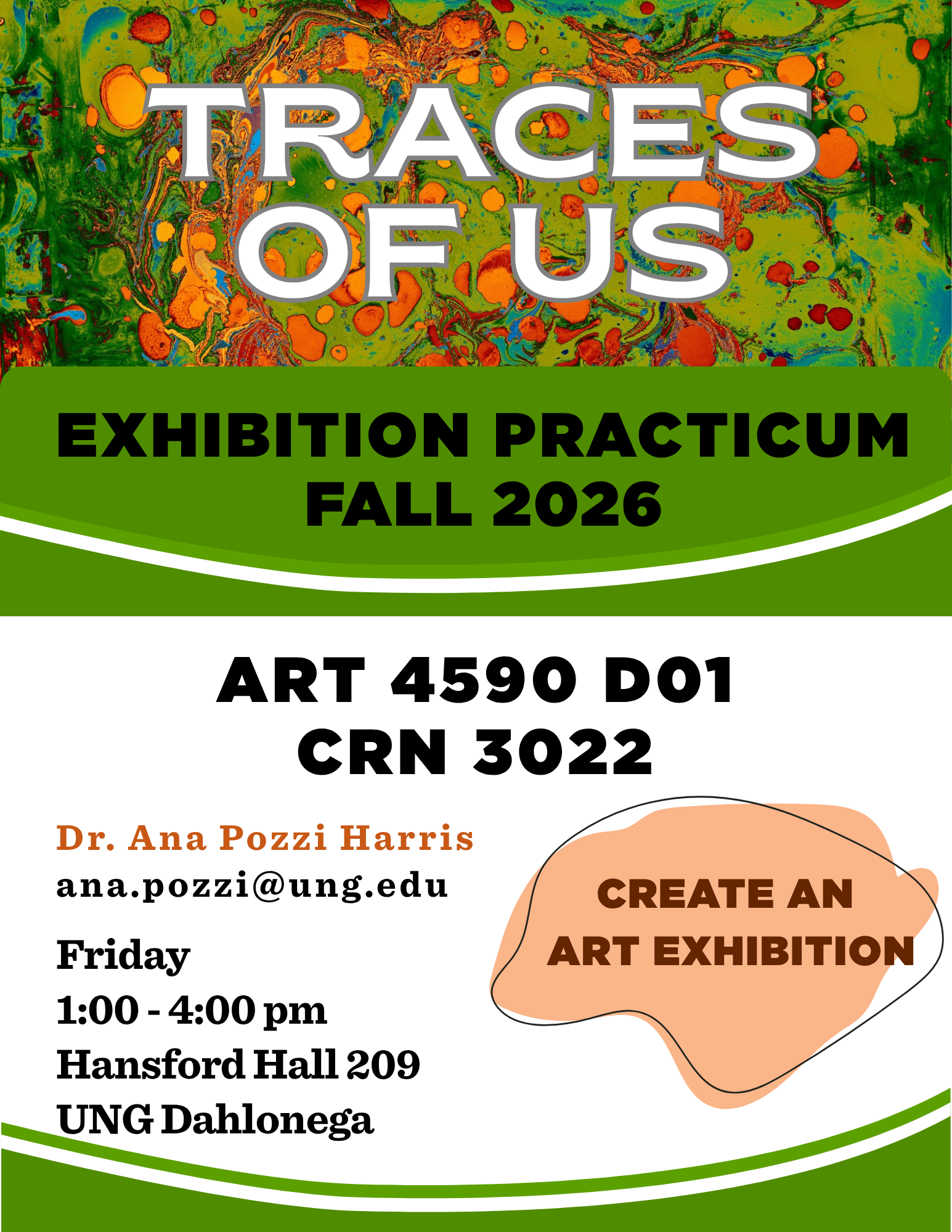 You will learn how to research art and create an art exhibition from start to finish. Our exhibition for Fall 2026 is Traces of Us. This will be a student exhibition curated by the students enrolled in Exhibition Practicum.